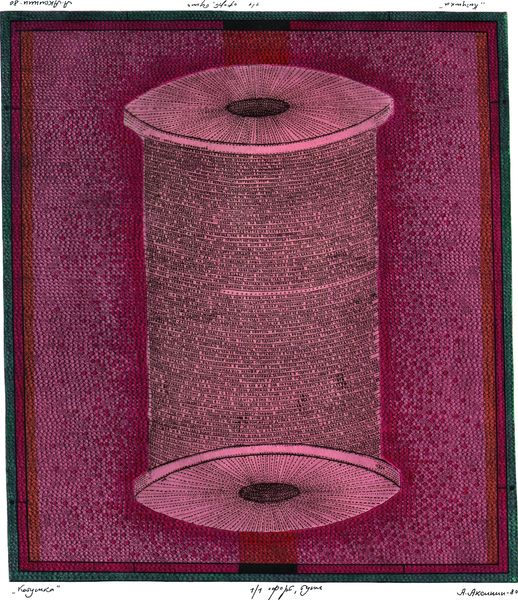 Editor: Here we have "May" created by Oleksandr Aksinin in 1980, using mixed-media, ink, and drawing. It's certainly intriguing; the intense colors, coupled with the enclosed central figure, create a rather otherworldly effect, don't you think? What do you see in this piece? Curator: Indeed, this work resonates deeply with symbolism. Notice the figures encircling the central, womb-like shape. These evoke a cultural memory, perhaps tapping into archaic ideas around fertility and the cyclical nature of life and death. Does it strike you as echoing ancient mother-goddess iconography? Editor: I can see that. The figures seem almost like ancestral guardians or witnesses. The central figure reminds me of both a vessel and perhaps a stylized seed... a vessel full of tears? Curator: An interesting perspective. Aksinin was working in a context of political repression, which may explain such somber moods. The teardrop figure could also be viewed as a phallus contained by the "Mother". Given this cultural situation, do you see resistance here? It’s almost like two sides warring internally within each person. Editor: The internal struggle against outside oppression is tangible and raw! That contrast in itself makes this very... potent. I will not view Aksinin's work the same way again, for sure! Curator: That is the fascinating dimension of art – layers of symbolic cultural resonance. One of art's finest dimensions.