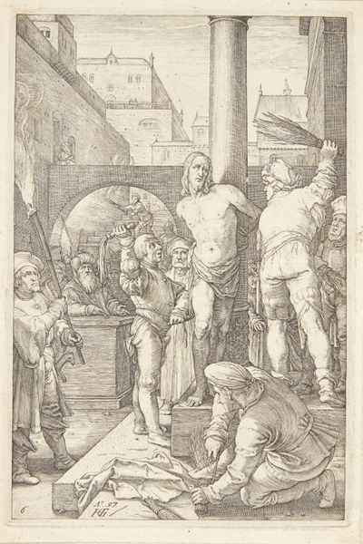 Nicolas Cochin’s “The Flagellation of Christ,” rendered in ink on paper, captures a brutal scene through the meticulous process of engraving. The stark contrast of the black ink against the white paper heightens the drama, each line carefully etched to define form and texture, from the smooth skin of Christ to the rough texture of the stone pillar. Engraving, a laborious process, mirrors the toils and tribulations of the biblical narrative. The artist's hand guides the burin, meticulously cutting lines into a metal plate, which is then inked and printed, leaving impressions on paper. The act of engraving itself becomes a metaphor for the physical and emotional toll depicted in the artwork. The medium and making of the artwork add layers of meaning, emphasizing not only the visual representation but also the tactile experience. The print invites contemplation on the convergence of art, craft, and the enduring power of human expression.