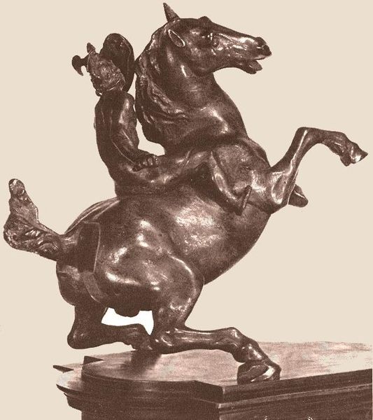 Giambologna rendered this bronze sculpture of Hercules and a Centaur around 1590. In this dynamic scene, we see Hercules, a symbol of heroic strength, overpowering a centaur, a creature representing untamed nature. Consider the club Hercules wields. It is not merely a weapon but a primal symbol of power, appearing in countless iterations across cultures, from ancient Mesopotamian reliefs to modern political cartoons. This club, a crude instrument, speaks to something deeply ingrained in our collective psyche: the triumph of order over chaos, civilization over barbarism. The centaur, writhing in defeat, echoes similar figures in mythological battles throughout history. Think of the fallen giants in ancient Greek art or the vanquished barbarians in Roman sculpture. This motif taps into a universal narrative of conflict and domination, resonating with our primal instincts. This image is more than just a depiction of a mythological tale; it is a powerful expression of the human psyche, echoing through time.