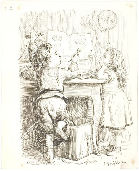 Lorenz Frølich created this etching, "Three Little Girls in a Room Arguing and Spitting," employing techniques rooted in the tradition of printmaking. Look closely and you'll see how the material influences the appearance of the work. The incised lines, created by acid biting into a metal plate, give form to the artist’s subject matter, giving it a lively spontaneity. The artist has used closely spaced hatching and cross-hatching to create different values and textures, and to depict the children’s emotional states. The making of etchings like this speaks to the culture of 19th century printmaking, which democratized images and made them available to a wider audience. Printmaking allowed for mass production and circulation, and the depiction of everyday scenes like this one, tapped into the burgeoning market for genre scenes and popular imagery. By focusing on the materials, the making, and the cultural context, we gain a deeper understanding of the art, and challenge the traditional hierarchy between fine art and craft.