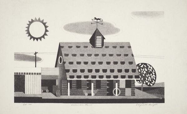 Roy Lichtenstein made "Red Barn" in 1969. I love how he's taken something so folksy, a barn, and zapped it with his signature Pop Art energy. It's like a comic book version of rural America. Check out the flatness of those colors, red, green, black, and white, and the bold outlines. There's no blending or shading. It's all about clean, crisp shapes and those dots, of course! The Ben-Day dots give it that mass-produced feel, like it came straight off a printing press. The dots are key. They take this image away from any sense of realism and make it totally artificial. It kind of reminds me of Alex Katz, another artist who simplifies forms and uses flat color, but Lichtenstein's got that extra layer of irony. It's like he's saying, "Yeah, it's a barn, but it's also a picture of a barn, and a comment on pictures of barns." So, what is more American than all that!