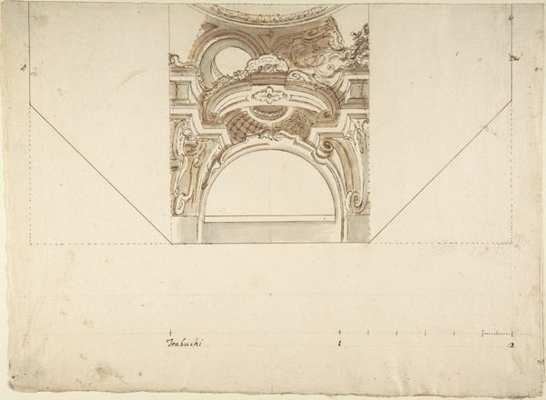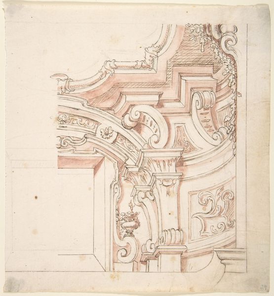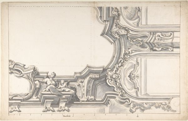 This 'Design for a Ceiling With an Elaborate Cove', rendered in delicate strokes, presents an interplay of classical motifs. Note the garlands, vases, and cherubic figures that evoke notions of abundance, celebration, and divine favor. These symbols, resonant with meanings that stretch back to ancient Greece and Rome, often appeared in triumphal arches and temples, signifying power and prosperity. The garlands, for example, are not merely decorative; they echo the wreaths of victory bestowed upon heroes. We see such motifs echoed centuries later during the Renaissance and Baroque periods, where they continue to be incorporated into architecture and decorative arts. Consider how the image of a garland, originally associated with celebration, has adapted over time, appearing in various contexts from religious paintings to state portraits. It's as if these symbols possess a life of their own, a 'pathos formula,' that resurfaces across the ages, adapting to each cultural moment. In this ceiling design, the artist taps into this rich history, inviting us to engage with a visual language that speaks to something deep within our collective memory.