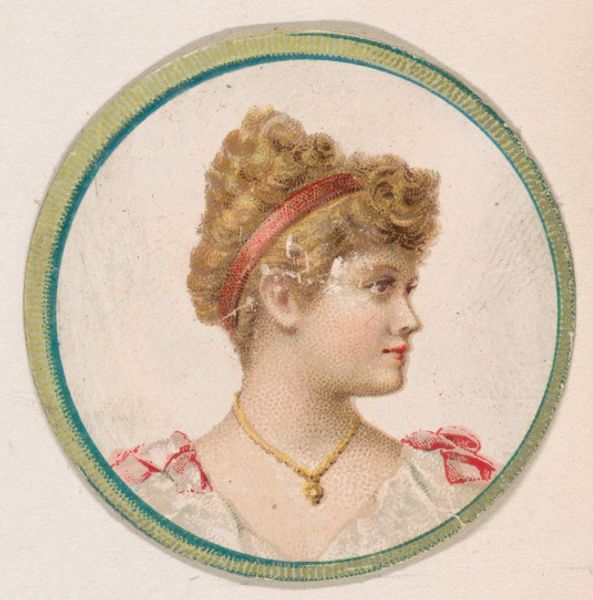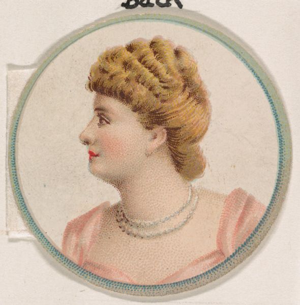 This chromolithograph, part of the Novelties series, was issued by Kinney Bros. Tobacco Company around the late 19th century. It's printed on paper, an inexpensive and easily mass-produced material, which tells us a lot about its original purpose. Chromolithography allowed for the creation of colorful images quickly and in large quantities. You can see how the printing process, with its layers of color, gives the image a slightly textured feel. This wasn't high art, but rather a collectible item included in cigarette packages, meant to entice smokers. The image, of course, is a carefully calculated advertisement, designed to appeal to consumers, with its depiction of an idealized woman. The card reflects the era's growing consumer culture, where even everyday items like tobacco were packaged with collectible images to boost sales. So, while it may seem like a simple picture, this "Egg" gives us a glimpse into the world of late 19th-century advertising, labor, and consumption. It shows us how images were manufactured and circulated as part of the marketing machine.