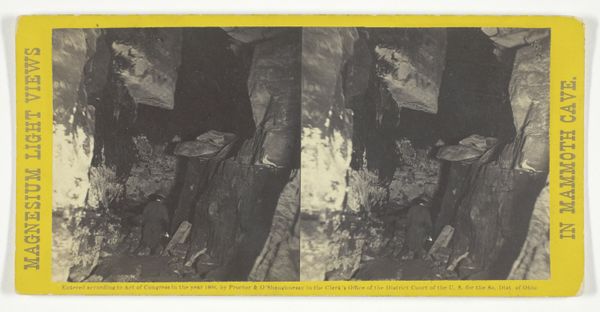Editor: Here we have "Angelica's Grotto", a gelatin silver print by Chas. Waldack, dating back to 1866. It has a strange ethereal beauty... like a scene from a Jules Verne novel. I'm immediately struck by its stillness, despite capturing something so geographically dramatic. What's your take? What do you see in this piece? Curator: It whispers secrets, doesn't it? Imagine stepping into that grotto, the cool damp air, the silence broken only by the drip, drip, drip of water. Waldack’s captured something almost primordial here. The darkness punctuated by the magnesium flash… it feels both scientific and deeply romantic, a little bit haunting even. Editor: Haunting is the perfect word! I see a photograph, of course, but also a stage, and almost feel like these rock formations could perform. Why choose this scene, do you think? What’s the bigger story? Curator: Think of the 19th century fascination with natural wonders. The 'sublime', remember? That sense of awe and terror in the face of nature's power. The Mammoth Cave became a tourist attraction and photographing it was as important as painting it was centuries prior. Waldack isn't just recording the cave; he's framing a specific, almost spiritual experience of it. Is he an artist? A scientist? Or both? I don't know; isn't that neat? Editor: I think that makes so much sense now. It really gives the photo a pulse. It's interesting how technology and art intersect here. I hadn't considered the impact of the magnesium flash on the final image; I just assumed it was...naturally eerie? Curator: Precisely! And that tension between observation and artistic impression, fact and feeling... It gives a photograph a sense of place. Thank you; you've now offered me some insights I can go forward with, too! Editor: This makes me feel ready to dive into other pieces from this period now, to trace other moments when technology was a form of art. It all feels connected in a cool way now!