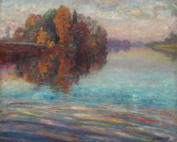 Editor: So this is "Le Pont des Arts", an oil painting by Maurice Boitel. It’s incredibly dreamy, almost like looking at a memory. What do you see in this piece, Professor? Curator: The hazy quality evokes a potent sense of nostalgia, doesn't it? Bridges, throughout art history, function as potent symbols. Often they signify a connection between two disparate realms, like the earthly and spiritual. Look closely; what sort of connection do you feel this bridge evokes? Editor: Hmmm, it’s interesting, because the light feels almost ethereal, yet the bridge itself is very solid and grounded. It feels like connecting reality to… something more. Curator: Precisely. Consider the cultural context; Boitel painted many scenes of Paris. Bridges like the Pont des Arts are more than just infrastructure. They are meeting points, places for lovers, artists, and philosophers – each imbues the location with a deep emotional resonance over time. Editor: So the symbolism is partly due to what the location already meant to people? Curator: Exactly! And the Impressionist style reinforces that idea. Boitel captures not just the physical scene, but the feeling of a place. That feeling, the atmosphere, gets carried within cultural memory. This hazy style makes you think of half-remembered things that are there, but not *quite* there. Editor: I never considered how style could amplify symbolism in that way! I was only thinking about how Impressionism dealt with fleeting moments. Curator: That’s definitely a key component! The artist offers us the chance to not only observe but also connect our own memories to the setting depicted. The rosy colour of the sky helps. The choice to emphasize the transient sunset invites that sense of romantic yearning. Editor: I will always think about Impressionism differently now, beyond brushstrokes and light! Thanks! Curator: Indeed! Every artistic choice can potentially augment meaning and enrich symbolism within collective consciousness. It’s exciting, isn’t it?