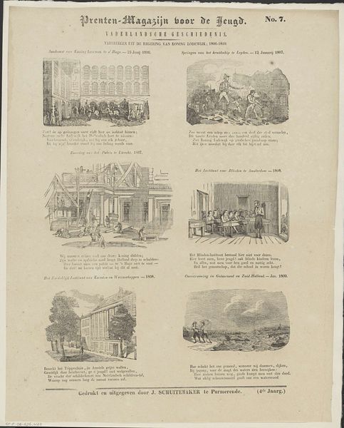 This lithograph from 1843, titled Dieren, presents a series of animal scenes, each imbued with cultural weight. Take, for instance, the lion, upon which a figure sits, evoking images of power and dominance. Consider how this echoes ancient Egyptian depictions of royalty, where lions symbolized strength and were often associated with pharaohs. The motif migrates through time, appearing in heraldry and classical sculpture, always carrying connotations of authority. Even in Jan Schuitemaker's relatively simple rendering, this image taps into our collective memory, subconsciously resonating with historical and mythological narratives. The emotional power of such symbols is immense, engaging viewers on a profound level, bridging centuries through shared visual language. Notice the non-linear progression of symbols like the lion, constantly resurfacing and evolving through history.