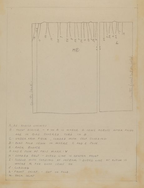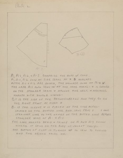 Charles Criswell produced this cape pattern sometime in the late 19th or early 20th century, using pen and ink on paper. This pattern offers a glimpse into the world of domesticity and self-sufficiency of the time. Consider how dressmaking was an essential skill, particularly for women, offering a means of creative expression and economic independence within the confines of their social roles. The meticulous instructions accompanying the pattern sections evoke the patience and skill required for this craft. The cape itself, a garment of both practicality and style, speaks to the wearer's identity and social standing. Criswell’s pattern embodies both a connection to the past and an invitation to imagine the lives and stories woven into each stitch. This isn’t just about clothing; it's about the artistry and labor of creating identity.