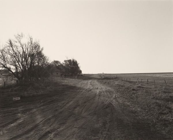 Frank Gohlke made this photograph, Landscape near Stillwater, Minnesota, using traditional darkroom processes. The final print, cool and neutral in tone, belies the labor involved. Gohlke worked with light-sensitive paper, which gives this photograph its particular texture and tonal range. It is not a slick surface; you can see the very fine grain. Look closely, and you'll notice the artist's hand in the dodging and burning of the image: areas held back from the light, others coaxed to greater darkness. The darkroom is not just a site of mechanical reproduction, but of skilled manipulation. It takes time and care to make an image like this. The result is not a quick snapshot, but a carefully considered meditation on the landscape, and humanity’s place within it. This photograph reminds us that even seemingly straightforward images are the result of thoughtful choices, and that materiality and making are key to understanding the full meaning of an artwork.