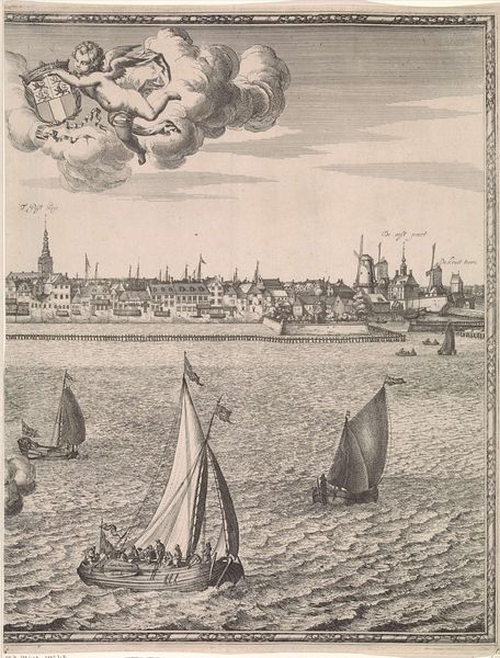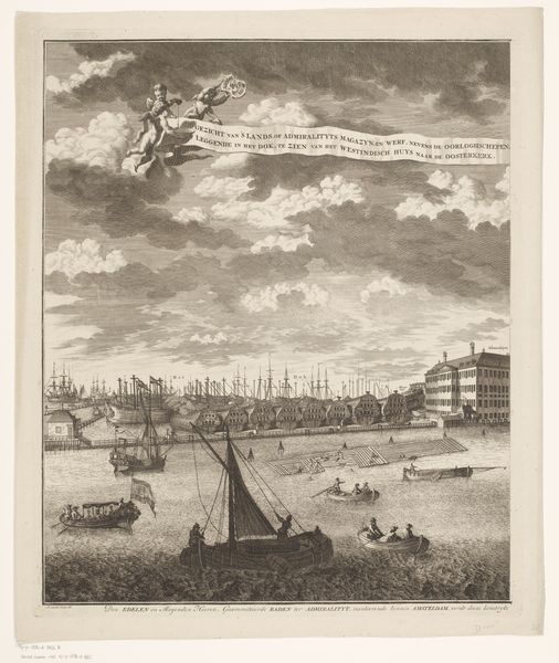 Curator: Here we have “Maart,” a captivating engraving and ink drawing crafted between 1722 and 1784 and attributed to Simon Fokke. It resides here at the Rijksmuseum. Editor: My first impression is the stark contrast; the crisp lines create a sense of immense activity despite the monochrome palette. It evokes a feeling of hard work meeting the vastness of nature, a visual representation of social realism in that period. Curator: Absolutely. Fokke’s imagery provides such insight. Look at the prominent tower. While towers, like obelisks and spires, often signal hierarchy and even spiritual transcendence, what do you make of it juxtaposed here with working class figures in such a common seascape? Editor: It brings up the intersection of power and labor in 18th century Dutch society. The imposing tower could represent the Church or State, overlooking—and arguably benefitting—from the laborers depicted on the beach. The workers seem small compared to it, reflecting their social status at the time, toiling away in this coastal town. Curator: It also subtly suggests the dominance of the church as the tallest building in town – as above, so below! It would have functioned as an imposing spiritual landmark in daily lives. Consider, too, that maritime trade and fisheries comprised a substantial part of the Dutch economy, creating jobs… but under often challenging conditions for sailors, fishers and their families. The seascape underscores both possibility and vulnerability. Editor: Right, that element of risk. Even the clouds churning in the background can be interpreted as a symbol of that instability and the potential disruption that weather or larger socio-economic forces could unleash on these individuals. How would their lives and labors contrast, say, with elites safely within the town and tower? Curator: We cannot dismiss the importance of place, either. Harbor images in the Netherlands served as signifiers of international ambition – control of waters meant power over the markets, resources, and perhaps new cultural influences, as well. These harbors provided key routes and economic sustenance, after all. Editor: True, but these visuals were very much deployed for civic ideology – they weren’t neutral! We can imagine Fokke having to weigh that. In any event, what's compelling is this layered view. It allows us to consider these intersections of economic opportunity, religious structures, and landscape in one concentrated visual. Curator: Indeed. Fokke’s creation really leaves us to contemplate both the immediate narratives of work and resilience while offering layered consideration about the society that enabled them. Editor: Absolutely. It is also important for the audience to question this perspective and the choices Simon Fokke has made to portray this snapshot of Dutch life.