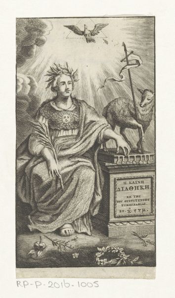 Editor: So, this is "Pallas," an engraving by Giovanni Girolamo Frezza, dating sometime between 1680 and 1741. The figure of Pallas Athena is very regal, almost severe. What can you tell us about the context of this print, considering the politics of imagery? Curator: Well, seeing Pallas – Athena, the goddess of wisdom and warfare – we must think about the patron and the public. Prints like this one served to disseminate classical ideals, especially among the elite. This image would have been acquired to signal the owner’s cultivation and knowledge of classical history. Do you notice how the goddess is portrayed? Editor: Yes, very stoic, almost idealized. Holding a spear and a miniature winged figure…what does it signify? Curator: Exactly! It emphasizes her virtues and authority. The depiction of Pallas seated on a throne reinforces her position of power. Think about where this print would have been displayed – likely in a study or library, spaces of learning and governance. How does the Palazzo Barberini mentioned in the inscription play into this? Editor: Right, that connects it to a specific powerful family. Displaying this would associate them with wisdom, strategy, and legitimate rule through a link to classical antiquity. Curator: Precisely! And who gets to own, view, and interpret that classical legacy is never a neutral question. This wasn’t just about aesthetics, but also about social and political positioning. Editor: It’s interesting to think about how something that seems so straightforward is actually involved in the dynamics of power and influence. Curator: Indeed! And by understanding those historical power dynamics, we can truly appreciate the richness and complexity embedded in such prints.