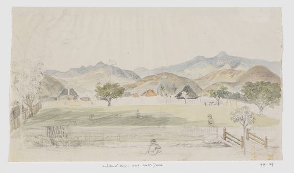 Adrianus Johannes Bik produced this watercolor and pencil landscape of West Java in 1818. It depicts the volcanic landscape and country residence of the Governor-General, offering a glimpse into the colonial presence in the Dutch East Indies. The image uses visual codes to establish a sense of order and control. The road, acting as a strong central axis, leads the eye towards the distant volcanoes. This composition subtly implies the dominance of the Dutch colonial power over the natural landscape. The residence symbolizes the institutional presence of the Dutch government. This stands in contrast to the volcanoes and local housing that reflect Indonesia’s geography and culture. During this period, landscape art served as a tool for asserting claims over territory. Bik's work invites us to consider the social conditions that enabled the production and consumption of such images. Further study into the colonial archives and travel accounts of the time might reveal more about the relationship between art, power, and the representation of the East Indies.