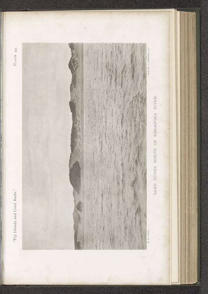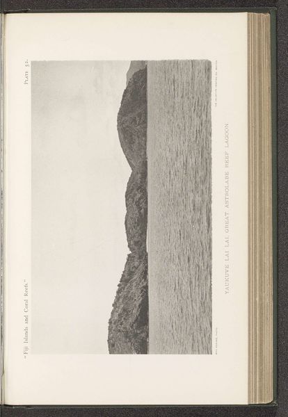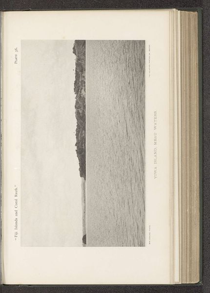 Curator: Before us, we have an albumen print titled “View of a Coral Reef and an Island of Fiji,” believed to be made before 1899, by Maximilian Agassiz. It’s quite evocative. Editor: There’s a stark, almost desolate feeling despite the potentially vibrant subject matter of coral reefs. The grey scale emphasizes the textures but mutes the implied colours. Curator: Exactly. The albumen process itself is fascinating. Egg whites were used to bind the light-sensitive chemicals to the paper. That speaks to available resources. This photographic print acts as a scientific document, reflective of late 19th-century colonial interest in cataloging distant lands. Consider how this process allowed for mass production of these images, shaping perceptions of Fiji for a European audience. Editor: I’m struck by the composition: the sharp contrast between the textured land, sea and sky; a visual language emphasizing the scale of these natural formations, don't you think? The horizontality gives it this static quality. Curator: Indeed, there's an emphasis on objectivity. This image then becomes a commodity, circulated within networks of scientific exchange, reinforcing power dynamics between colonizer and colonized. The very act of photographing, printing, and distributing the image is about claiming ownership, documenting resources, right? Editor: Yet, beyond the politics, I’m drawn back to its aesthetics. Look closely at the tones, how subtle they shift and vary and the repetition of forms creating a rhythmic visual experience... Curator: I think both our observations co-exist and matter, as a material object made in specific circumstances reflecting those specific colonial ideologies through production and circulation but retaining that aesthetic draw as well, so thanks. Editor: Precisely. A balance between seeing and feeling… seeing how it's made and also feeling the composition, until the very end.