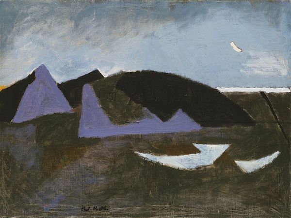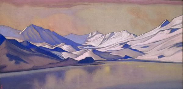 Curator: So, we’re looking at "Himalayas. Chain of mountains." It’s a pastel piece from 1942 by Nicholas Roerich. Editor: Woah, that hits me right in the gut with a cool blast of serenity. It’s so muted and vast, like a half-remembered dream of a snowcapped giant. Is this some romantic fever dream or what? Curator: Roerich had a complex relationship with romanticism and symbolism. Considering the time it was painted, mid-World War II, this landscape could be seen as an escape, but also as a potent symbol of enduring strength against turbulent times. The Himalayas, as a geographical and spiritual place, represent both refuge and power. Editor: I dig that. Like, art as a sanctuary when the world’s going bonkers. Makes you wonder what inner chaos Roerich was wrestling with. Check out the colors—that pale, ethereal sky against the almost bruising blues of the peaks… it’s moody. You know, kind of like how I feel on Mondays. Curator: The limited palette contributes to the artwork's power, yes, but think about what these icy mountains signified historically and culturally. They stood, and still stand, as barriers, borderlands, sites of spiritual pilgrimage, and reservoirs of natural resources fought over by colonial powers and nation-states. Editor: Oh totally. You get the sense he’s not just painting pretty peaks, right? It's more like an ode to something untamable, maybe even a prayer for resilience? Though, between you and me, I wouldn't wanna try climbing them without a decent Sherpa, political symbolism or not. Curator: Exactly, that's the beauty of art; layers upon layers. This work functions on individual aesthetic and spiritual levels, but it speaks too to much larger social, historical, and political forces at play. Editor: Hmm, thinking about it now, I see those layers too. Beyond the 'ooh, pretty mountains' vibe, there's that quiet demand to acknowledge nature’s sovereignty over, well, everything. Food for thought! Curator: Indeed, Roerich gives us ample scope for contemplation about landscape and the complex dynamics of human agency. Editor: Couldn't have said it better myself. It's a good reminder to find our own metaphorical mountains, climb 'em, and scream into the void—responsibly, of course!