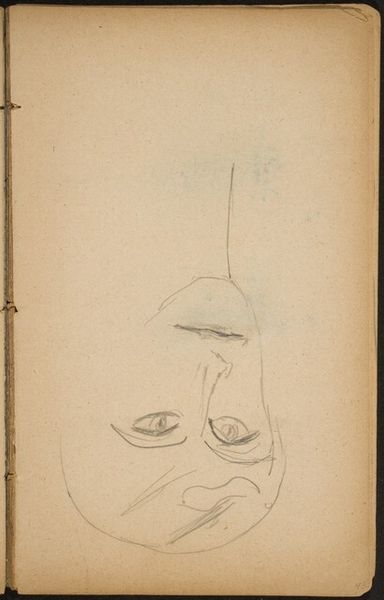 Curator: This is an unfinished pencil sketch by Max Beckmann, titled "begonnene Skizze eines Mannes mit Bart", or "Unfinished Sketch of a Man with Beard". It’s thought to be a self-portrait. Editor: It feels quite stark, almost vulnerable. The sparse lines reveal more than they conceal, giving the impression of a figure caught in a moment of deep introspection, perhaps even distress. Curator: I agree. It speaks volumes despite its lack of detail. Beckmann, known for his engagement with the anxieties of his time, certainly understood the power of the fragmented and the incomplete. This raw vulnerability, especially as a self-portrait, hints at a profound grappling with identity and the self under duress, maybe even related to the expressionist movement overall. Editor: Considering the limitations of pencil on paper, the deliberate restraint in detail is compelling. What we do see—the downturned mouth, the furrowed brow etched into the paper. There's an economy to it that heightens the impact. Curator: Precisely. He manages to communicate the essence of human experience. What does the notion of a self-portrait sketched with only a pencil tell us about ideas of accessibility of tools for expression and construction of identity in this particular era? Editor: I keep thinking about the physical act of sketching this piece; was this work intended to be left as is? As simply part of a notebook? How does its placement in relation to the whole sketchbook alter our perception? The sketch becomes an exploration of the mundane conditions in which art gets conceived, produced and also consumed. Curator: Yes! The material constraints force both artist and viewer to reckon with authenticity and intention and meaning. Editor: Looking at this incomplete man staring at the artist but looking back at us, makes you wonder about the role of production within a wider matrix. This quick medium of creation speaks for itself. Curator: It’s definitely more layered than it initially seems; the piece reveals something complex about artistic self-perception during times of internal and global conflict. Editor: Absolutely. Curator: Well, I think this has given me a new framework with which to continue thinking about the work of Beckmann. Editor: For me, it deepened an appreciation for material limitations in expression.