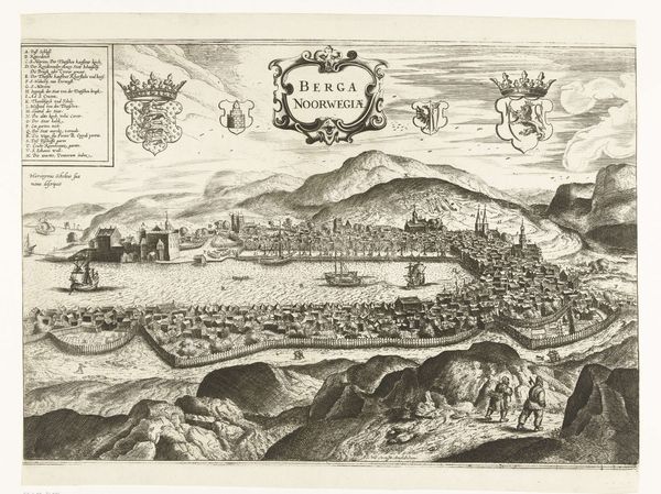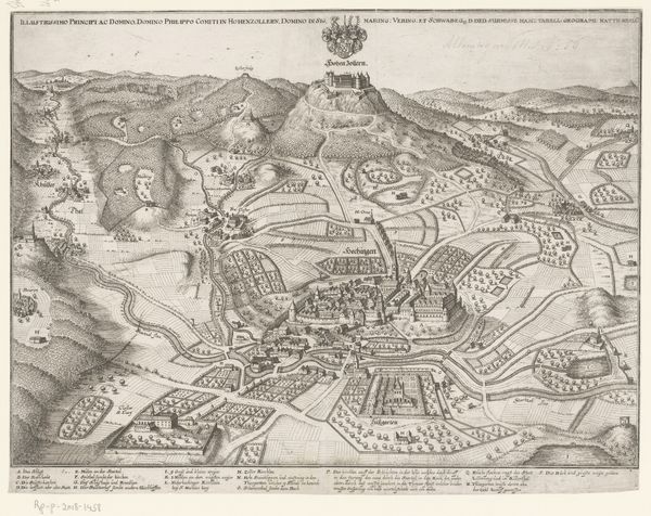 This is an undated, anonymous print titled "View of Serravalle (Vittorio Veneto)." Serravalle, now part of Vittorio Veneto, Italy, is rendered with the precision of a mapmaker and the artistry of a landscape painter. The work offers us a dual perspective, both an overview of the town's layout and an intimate glance at the figures populating the foreground. The meticulous detail given to the architecture and topography speaks to the values of order and control that defined much of early modern European society. Yet, within this structured representation, we also glimpse the human element: the travelers with their horse, rendered with an eye for their social roles and interactions. What stories do these figures hold? What journeys have they undertaken to arrive at this vista? The fortifications around the city hint at a history of conflict and protection, reflecting the shifting allegiances and power struggles of the region. As you consider this view, reflect on the layers of history and human experience embedded in the landscape before you.
