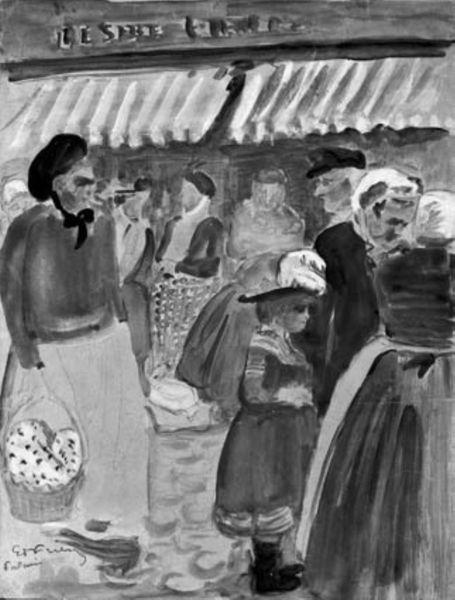 Othon Friesz created this painting of a market in Normandy, France, using oil on canvas. The covered heads of the women dominate the foreground, a symbol deeply rooted in centuries of cultural expression. These head coverings, echoing those found in countless depictions of women from various periods, speak of modesty, status, and regional identity. Consider how similar veils appear in Renaissance paintings, each fold and drape carrying a weight of social and religious significance. Over time, the meaning of this motif has shifted from sacred to secular, from necessity to tradition. The covered head holds both a visible and invisible meaning. In Friesz’s depiction, the women's obscured forms evoke a sense of communal anonymity, a collective identity steeped in tradition. This anonymity can be unsettling, yet it draws us into a space of introspection and reflection. The market scene becomes a stage for our own subconscious projections. The veil, in its quiet persistence, reminds us of the cyclical nature of cultural symbols and their enduring power to shape our perceptions.
