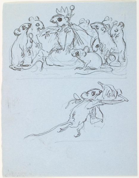 Curator: Looking at this page, filled with sketches, brings to mind similar sheets by masters like Leonardo. The artwork here is "Muizen," or "Mice," by Otto Verhagen, made somewhere between 1928 and 1930. It's a set of graphite studies, presumably from a sketchbook. Editor: My initial impression is one of immediacy, like a snapshot of ephemeral, fleeting moments. They seem caught mid-gesture, alive with tiny twitches. Curator: Precisely. Verhagen captures movement economy through sparse, assured lines. Note the distribution of value; see how the darker areas suggest volume and groundedness, while the lighter areas imply movement. There's a delicate tension here. Editor: It makes you wonder about Verhagen's life. Mice were quite common. What motivated him to devote precious art materials to the mundane? Could they represent social class? The overlooked members of society surviving through stealth and grit? Curator: I find it unlikely. Look closer at the details; there are multiple positions; one mouse is scratching its ear; one nibbles its paw. They are scientific investigations! Studies of form and behaviour, as one might see in Eadweard Muybridge's photography of animals in motion. The artist is more interested in observation and understanding than in offering overt social commentary. Editor: Fair point, yet considering his life through the Great Depression in The Netherlands adds weight. It's difficult to disconnect that from the choice of subject, the humble mouse, the ultimate survivor. Curator: I agree that wider circumstances inevitably play a part. Yet Verhagen's engagement seems deeply invested in the inherent compositional possibilities. Consider the interplay between the negative space surrounding each creature. Editor: Regardless, it leaves me admiring these little survivors even more, now thinking of social implications and appreciating their formal grace. Thanks for providing clarity. Curator: My pleasure; seeing how structural observation enhances emotive insight always validates these enquiries for me.