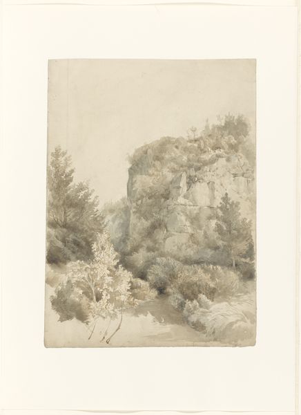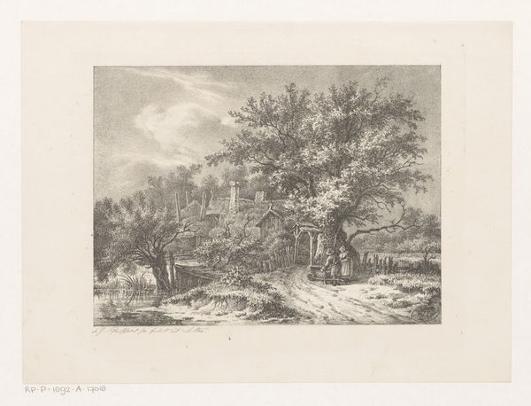 Curator: Here we have Andreas Schelfhout’s "Winter Landscape with Pine Trees and a Man with Sled," an engraving dating from somewhere between 1847 and 1865. It’s currently held in the Rijksmuseum. Editor: Wow, it feels like a memory. Grey and muted, like something you almost remember from a dream. There's such a stillness. You can practically feel the crunch of the snow, can't you? Curator: Schelfhout was a master of capturing the Dutch winter. This engraving, made with such intricate detail, allows us to delve into 19th-century perceptions of landscape, specifically how romanticism influenced the viewing and depiction of nature. How do you think ideas around gender influence it? Editor: Good question. The lone figure with the sled, for me, it feels sort of…lonely. But in a resilient, working-class way. Is that weird? The whole composition feels inherently human, not about conquering nature, more like coexisting with it. Men working as equals among the snow. Curator: I don’t think so. If you analyze the engraving, especially how it utilizes the interplay between light and shadow, you see a stark portrayal of the socio-economic landscape of the time. The subdued palette underscores the potential hardship of winter, the constant threat of precarity looming large in rural lives. I wonder if we could perhaps place that with climate change too? Editor: Definitely! Plus, those muted tones, the kind of oppressive greyness... you feel the cold, you know? I reckon he might be saying we should remember the hardship of working-class individuals, while feeling gratitude for nature, because we cannot survive without nature, no matter the social class. Curator: I think that’s definitely at play here. Also the very act of choosing the winter landscape as worthy of depiction elevates these subtle class tensions as a conversation. It becomes about human interactions within a natural system. It gives value to working lives and environment, as one entity. Editor: Beautifully put. Thinking about it all this detail, those trees in the foreground especially, invite us to stop rushing around in the contemporary era. Curator: Yes. There's a profoundness to that simple connection. It serves to remind us of shared, historical ecologies and labour, something valuable in a world that continues to divide across environmental degradation. Editor: Exactly, it is not just about recording a beautiful scene but also engaging in cultural commentary. Thanks for pulling those insights out for me. Curator: Anytime! These images hold much more than meets the eye.
