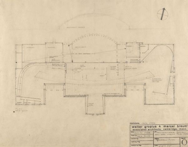 Curator: Here we have a drawing from around 1863-64, titled "Charles R. Larrabee House, Chicago, Illinois, Attic Plan." It’s a mixed-media piece with watercolor elements, designed by Edward Burling. Editor: My initial reaction is that it’s beautifully austere, almost minimalist in its lines. The delicate washes of color suggest depth and dimension despite the rigid geometry. Curator: This attic plan speaks to the ambitions of Chicago's elite during the Civil War era. Consider the social and economic forces at play. The Larrabee House represents not just shelter, but aspiration, signaling upward mobility amidst national turmoil. Burling was a popular architect with connections; he understood what buildings signified. Editor: From a formal perspective, the orthogonals create a structured space, yet the slight imperfections in the hand-drawn lines soften the effect. The use of watercolor allows a subtle interplay of light and shadow, enhancing the plan’s legibility. There's a captivating tension between precision and fluidity. Curator: Indeed, and the attic itself often represented a transitional space in Victorian-era homes, a place between public and private. Plans like these offered clients a tangible vision of their future domestic lives, reinforcing social expectations of order and prosperity. Editor: Notice also the placement of windows; they punctuate the façade with a regular rhythm. It suggests a thoughtful distribution of natural light throughout the space. How would that inform one's experience inside, versus viewing it purely as an abstract, technical plan? Curator: We might consider how public perception of architecture shifted as architectural drawings moved from trade secrets to sources of marketing, like advertisements shaping expectations, influencing property values, and embodying Chicago's reconstruction-era ethos. Editor: Precisely, this artifact reveals more than structure; it reveals intention, anticipation, and the poetics inherent in delineating inhabitable space. Curator: Analyzing this, you get an echo of the booming economy trying to redefine itself with architectural plans that sold an illusion. Editor: And through compositional nuances, a vision is shaped by careful distribution of windows and open spaces. Curator: Seeing beyond just the architectural layout allows you to appreciate that even simple designs tell a story about social class.