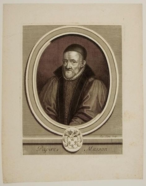 This engraving, rendered by Jacques Lubin, captures Jean Papire Masson within a symbolic oval frame. This shape, ever-present from antiquity to the Renaissance, transcends mere geometry, acting as a potent symbol of cyclical time and containment. Note the heraldic crest, an emblem of lineage and identity. Such symbols serve as anchors, connecting individuals to broader histories, echoing motifs found on ancient shields and Renaissance tapestries. The act of memorializing identity through heraldry is not static; it evolves, much like the symbols we see in dreams, reflecting the shifting sands of personal and collective memory. Consider how this visual language has permeated through time, reappearing in family portraits and national emblems. These symbols tap into our shared subconscious, stirring emotions and forging connections across centuries. In this portrait, the dance between past and present, individual and collective, invites us to contemplate the enduring power of symbols in shaping our understanding of ourselves and the world.