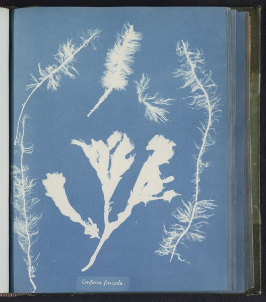 Editor: This is Anna Atkins' "Callithamnion hookeri", created sometime between 1843 and 1853. It’s a cyanotype, so it has this beautiful Prussian blue color. The plant itself seems almost ghostly. How does this piece fit into the context of the art world at that time? Curator: Well, this wasn't really conceived as "art" in the fine art sense that we think of it today. Atkins was a botanist, and photography, especially cyanotype, was a tool. Consider how scientific illustration was being revolutionized; accurate visual records were incredibly valuable, and photography provided a democratizing way of image capture. Editor: Democratizing how? Curator: It provided visual information in a way that relied less on the subjective skill of the artist-illustrator. Atkins directly placed the algae onto treated paper. Light and chemistry did the work of “drawing.” Think about the explosion of botanical knowledge during this period. Imperial projects, global trade, scientific expeditions... these fueled the need for detailed visual records of the natural world. Editor: So, was Atkins intentionally subverting artistic conventions, or just embracing new technology? Curator: Perhaps a bit of both! As a woman scientist, her access to the established art world would have been limited. Photography offered her a space outside those constraints. She was contributing to scientific knowledge, yes, but also carving a niche for herself. We might view it now as challenging traditional notions of art precisely because it existed in this liminal space. Editor: It’s fascinating how science and art could be so intertwined then. I'll never look at cyanotypes the same way again. Curator: Absolutely, seeing this work through a historical lens helps us recognize its many layers of meaning – its social, scientific, and artistic impact. It prompts us to rethink what gets defined as art, and by whom.