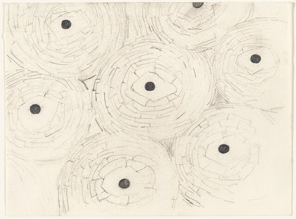 Andy Goldsworthy, the British artist and sculptor, created this drawing called 'Roof III - Aerial View' using graphite and paper. Goldsworthy's practice is deeply rooted in the land, and his ephemeral sculptures made from natural materials respond to and reflect the beauty of the environment. This drawing offers a peek into Goldsworthy's process, documenting an aerial perspective of his sculptural work. The rooftop, rendered as a series of circular forms, captures an emotional aspect of the artwork. The circles may remind us of tree trunks, and the drawing has the feeling of a natural setting. Goldsworthy's art provides us with an alternative narrative. It emphasizes our connection to the earth, even as it addresses environmental and sustainability issues. His careful arrangement and close attention to natural details urges us to see the natural world around us in a new way.