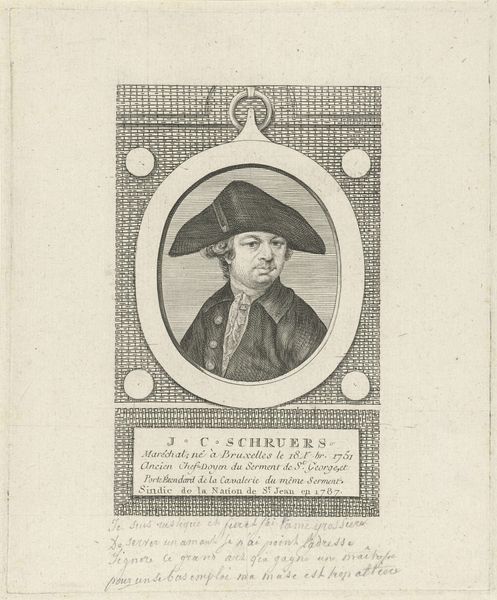 This is J.F. De La Rue’s portrait of J.F. van Campenhout, an engraving, offering us a glimpse into the life of a Brussels native born in 1738. Campenhout's attire, complete with a powdered wig and formal jacket, speaks to the norms and expectations of upper-middle-class European society. Yet, engravings like these were often tools of social positioning, designed to project an image of respectability and status. The inscription notes Campenhout was the ‘Sindic de la Nation de SPierre en 1787,’ suggesting his involvement in governing or representing a community. What does it mean to be a leader or representative during a time of social upheaval and revolution? Consider how portraits like these both reflect and shape societal values. They memorialize individuals but also construct narratives of identity and belonging. The formal composition contrasts with the personal story it hints at, revealing the complexities inherent in portraying a life during the transformative 18th century.