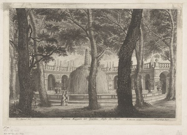Editor: Here we have Johann Andreas Benjamin Nothnagel’s “Fantasie architectuur met enkele figuren,” made sometime between 1739 and 1804. It appears to be an etching or engraving depicting a fantastical architectural scene. It gives me a feeling of grandiose decay, the crumbling of a once-magnificent city. What can you tell me about it? Curator: Well, let's look at the materials first. It’s an etching, so the labor involved is in the physical act of incising lines into a metal plate. This isn't high art sprung from pure inspiration, but a craft. It demands physical skill and repetition, a form of labor often overlooked when we discuss artistic merit. How does that change your view of its grandeur? Editor: It makes it feel… less distant, more grounded in the real world of work and production. How did this printmaking process affect the work’s dissemination? Curator: Exactly! Engravings democratized images. These weren’t unique, precious paintings for the elite. They were reproducible, commodities entering a burgeoning market. These cityscapes would have reached a wider audience, shaping perceptions of space and power for people who may never have seen these buildings in person. Editor: So, the image itself, its content, is tied to the materials and the method of production? It's not just a beautiful picture, but an object circulating within a specific economy. Curator: Precisely. The image, its material existence as an etching, and its circulation are all interwoven. It invites us to consider who had access to such imagery and what social functions these depictions served. The labour, materials, and circulation—they all shape its meaning. Editor: I see. Looking at it now, I can't separate the artistic skill from the process of making a tangible, reproducible object. It really reframes how I understand the artwork and its significance. Curator: Agreed. By understanding the materials and means of production, we grasp a fuller understanding of the artwork and its cultural implications.