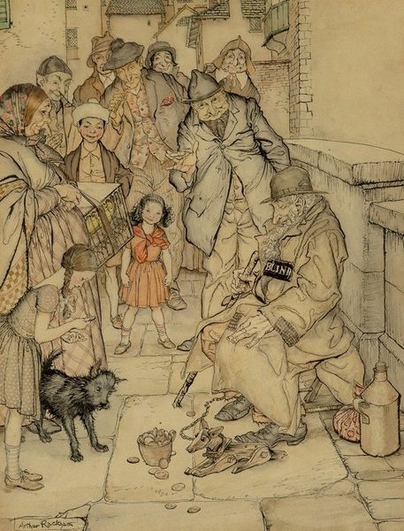 Arthur Rackham made this illustration for the tale of Hop-O’-My-Thumb, sometime in the early 20th century. Rackham, working in what was once called the Golden Age of Illustration, evokes a world of fairy tales. It’s a world where the shadows are deep and the stakes are high. Here, a group of children huddle in the rain, seeking shelter with a looming ogress. The gnarled and frightful figure of the ogress, lantern in hand, fills the doorway, as she appears to invite them in. Yet, the dark fairytale asks us, at what cost does she offer this shelter? Rackham’s illustration speaks to our fears, but it also acknowledges childhood's vulnerability and resilience. As we stand here, we might remember the stories we were told as children. Perhaps, we recognize how fairy tales helped us to understand our place in the world.