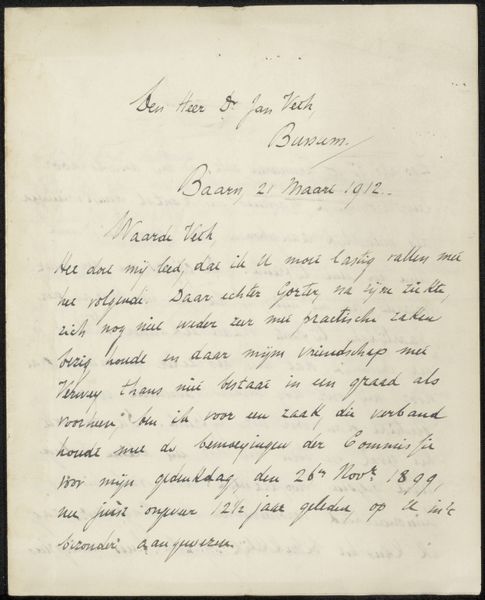 Editor: Here we have "Brief aan Philip Zilcken," thought to be from 1896. It’s a pen and ink drawing on paper, housed in the Rijksmuseum. Looking at it, I’m immediately struck by how personal and immediate a handwritten letter feels, especially compared to the crisp, impersonal feel of printed text. What historical perspectives might help us understand this piece better? Curator: Considering the context of the late 19th century, this letter transcends simple personal correspondence. The letterhead "F. Juven & Cie, Éditeurs" tells us it's coming from a publishing house in Paris, likely involved in the distribution of art and illustrated materials. We see publications like "La Lecture Illustrée" listed, indicative of a burgeoning mass culture and the importance of disseminating ideas through print. Given this institutional angle, how does this affect your initial read of the document’s "immediacy"? Editor: I see what you mean. It feels less like a private communication and more like a carefully constructed statement meant for wider consumption. So, what was the social function of a letter like this circulating within artistic and publishing circles at the time? Curator: Precisely! This letter serves as a commentary on the challenges of promoting art – specifically, navigating bureaucratic hurdles. It bemoans a public resistant to change, seemingly more advanced in Holland (if under French direction, haha). How do you read his concerns about moving paintings to Paris “from a provincial town?” What underlying assumptions about the art world are at play? Editor: It suggests Paris was seen as the center of the art world, and other locations were of secondary importance, facing struggles gaining recognition. Also, the writer touches upon issues related to funding and support for the arts. Curator: Right, the letter provides a window into the anxieties and strategies of cultural actors operating within specific socio-political contexts. What were your thoughts reflecting on how institutions and social forces shape artistic endeavors? Editor: I hadn't fully appreciated the complexities. This makes me reconsider the role letters can play in revealing networks of power and influence that drive the art world. Thank you for pointing that out!