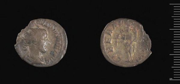 Editor: This is an Antoninianus of Valerian I, a Roman coin, from the Harvard Art Museums. The wear on it is striking. What symbols do you see embedded in this object? Curator: Ah, yes, the symbols. Consider how currency operates, then and now. On one side, we see Valerian, his portrait meant to embody imperial authority and project an image of power. What feelings does his image evoke? Editor: Integrity? A sense of duty, perhaps? Curator: And on the reverse, the depiction of deities or allegorical figures reinforces the emperor's connection to divine favor and the prosperity of the empire. So, this coin is not just currency; it's a propaganda tool, a tangible symbol of Roman power and cultural memory. Editor: Fascinating. I never thought about currency being propaganda. Curator: Indeed. Every scratch and mark speaks of trade, exchange, and the slow march of time, a potent reminder of the emperor's enduring legacy. Editor: I'll certainly look at coins differently now. Thanks!
