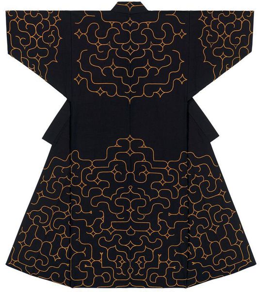 This robe, with heart-shaped embroidery, was made by an anonymous maker. The Ainu people of Japan created robes like this one, called Chikarkarpe, using elm-bark cloth called attush, woven from the fibers of the inner bark of elm trees. Attush is known for its durability and breathability, ideal for the Ainu's cold climate, and humid summers. Chikarkarpe robes involved considerable labor, from harvesting bark to weaving the cloth. The geometric designs, embroidered onto the cloth, are made with dyed cotton thread, and hold symbolic meaning related to nature and spirituality. Traditional Ainu garments incorporate these designs not just for decoration, but for protection. The patterns require both planning and skillful execution, reflecting a deep connection to Ainu cultural values and beliefs. The artistry and workmanship seen in pieces like this challenge assumptions about "primitive" art. They show how craft practices encode complex histories and worldviews.