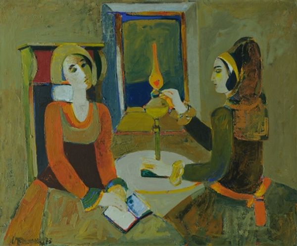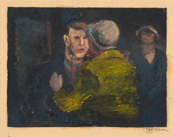 Editor: This is "Death Struggle," an oil on canvas painting by Edvard Munch from 1915. It feels incredibly raw, like peering into a very private moment. The brushstrokes are so visible; it’s almost as if you can feel the texture of the paint itself. How do you read this work? Curator: I see here a potent distillation of Munch's expressionistic tendencies focusing on the visceral materiality of the painting. Consider the thick application of paint: the sheer labor involved in building up these layers. Look at the way the paint itself seems to embody the weight of grief. And note, the social context here, 1915 – amidst war, how might this scene of domestic grief reflect the wider anxieties of the time, perhaps suggesting how all struggles share basic material realities? Editor: That’s a fascinating point about the materiality reflecting the emotional weight. So you’re saying that even the way the paint is applied – the actual physical process – contributes to the overall meaning? Curator: Precisely. It challenges that clear boundary between labor and artist. Look, even the bottles on the bedside table, those simple, mass-produced items are made to stand as silent witnesses within a hand-made painting. Consider what it suggests about art's relationship to material culture. Editor: So, beyond just being a representation of a scene, the artwork, itself, becomes an object imbued with meaning through the act of its creation. This is really interesting. How do you think contemporary viewers engage with this material reality compared to viewers in 1915? Curator: That is a wonderful question. Modern audiences perhaps focus less on narrative details. In 1915, a more clear recognition of a typical death scene might have had impact, yet, there is also the question of class here, no doubt related to hospital environments and healthcare. These factors become embedded into the painting. Editor: So much to think about! It really shifts my focus from just "what" the painting depicts to "how" it was made, and what that process communicates about the social landscape. Curator: Indeed. By centering our focus on the means of production and its embedded cultural value we find the painting resonates as powerfully today as it must have over a century ago.
