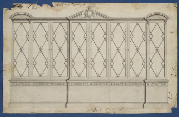 Curator: Standing before us is “Library Bookcase, from Chippendale Drawings, Vol. II,” created in 1753 by Thomas Chippendale, now residing at the Metropolitan Museum of Art. Editor: My immediate response is that the precise line work evokes order and symmetry, reflecting the clarity and ambition of Neoclassical design. Curator: Precisely! Chippendale operated during a time when design became increasingly associated with class and status, and his furniture catered to wealthy patrons eager to express their sophisticated taste and embrace Neoclassicism’s association with power. Editor: Look at how he meticulously renders the geometric glazing bars. They compartmentalize the space with incredible precision, dividing the display surface to amplify the value of its contents. It is all about idealized proportion and the golden ratio in real life. Curator: And not just the forms themselves. We need to look at how this design served its social function, where these objects were going. Aristocrats used such shelves as showcases of personal libraries and collected curiosities. As such, these rooms became sites for both education and public display. Editor: Beyond functionality, the elevation of such spaces into statements of power is noteworthy. We can follow the meticulous detail with the use of geometric elements in the drawing itself, but consider these forms translated to woodwork! Curator: Yes, consider Chippendale’s clients; they often sat on boards overseeing colonial endeavors abroad, directly connecting their personal acquisitions with far-reaching extractive capitalist networks. They wanted their wealth and social influence affirmed at every glance. Editor: This truly reminds us how design intertwines geometric form and line with an era's aspirations and a particular worldview. It is like capturing history itself, then constructing that into everyday living spaces. Curator: Absolutely. When observing this design, it is also about the world of knowledge it intended to convey and who it served in its own time and context. It allows us to understand the complex dynamics in aesthetic movements, colonial ambition, and knowledge systems of this time.