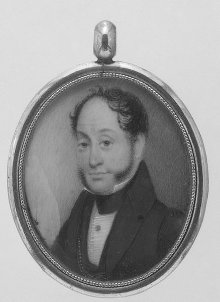 John Wood Dodge created this miniature portrait of Reverend William Lupton Johnson using watercolor on ivory. During the 19th century, such miniatures functioned as intimate keepsakes, often worn as jewelry. This work offers a glimpse into the intersection of religious identity and social status during a period of significant social change. Dodge, celebrated for his miniature portraits, here captures the Reverend with great attention to detail, from the gentle expression in his eyes to the subtle texture of his coat. Wearing spectacles, Reverend Johnson projects an image of intellectualism and spiritual authority. His clerical attire subtly indicates his profession, suggesting a life dedicated to religious service. It would be interesting to consider how Johnson's religious beliefs shaped his understanding of social issues such as slavery, a dominant concern at this time. This miniature serves as a poignant reminder of the personal and social complexities inherent in portraiture. It prompts us to reflect on the individuals who shaped their communities through faith and leadership.