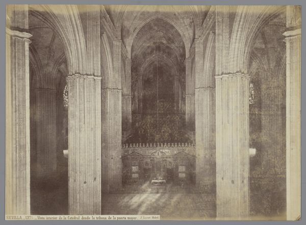 Editor: This is "Interieur van de Sint-Jacobskerk in Luik," or "Interior of the St. James' Church in Liège," created sometime between 1866 and 1870 by Jules Hippolyte Quéval, and held at the Rijksmuseum. It’s a photograph presented in stereo, meant to give depth. The first thing I notice is the soft, almost ethereal quality of light. What aspects of the making of this print do you find most compelling? Curator: For me, it begins with recognizing this image not simply as a representation, but as an object manufactured under very specific conditions. Consider the collodion process likely employed. This was a time-sensitive method, requiring immediate development. We're not just seeing a church interior; we are witnessing the constraints and possibilities afforded by this particular photographic chemistry. Think about the labor involved – preparing the glass plate, the exposure time, the darkroom work. How do those material realities shape our understanding of what we’re seeing? Editor: So the image itself becomes a record of the process, a physical manifestation of labour? Curator: Precisely! And consider the economic implications. Photography was becoming more accessible, but still involved specialized knowledge and equipment. Who had access to create such images, and what were their motivations for doing so? Was it purely artistic, or did it serve a commercial or even propagandistic function related to religious institutions solidifying social bonds? This piece raises fascinating questions about art's entanglement with technological development, capitalism and social forces. Editor: I hadn't considered that it could have a connection to social or capitalistic endeavors! It changes my view. Curator: Exactly, looking at it from this viewpoint helps understand this artwork more deeply. Editor: Thinking about the conditions of its creation gives me a deeper understanding and respect for the print as a historical and social document, not just as an artistic image. Thanks for expanding my perspective.
