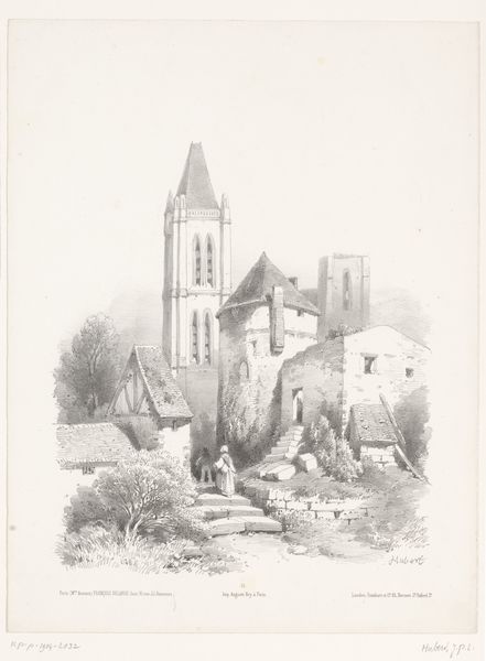 Editor: Here we have Carel Christiaan Antony Last's "Dorpskerk," made with ink on paper, sometime between 1834 and 1876. It feels incredibly detailed for an ink drawing – almost photographic in its precision. I’m struck by the stillness, despite the presence of the figures and animals. What’s your take? Curator: Oh, I love this. It's like a little poem, isn't it? Last has this beautiful way of rendering the ordinary into something sublime. Forget epic battles; he gives us the soul of a village. Do you see how the church dominates, but it doesn’t overshadow the people going about their day? It is quite amazing for a simple drawing on paper! Editor: It's definitely not the stereotypical "grand" religious painting. Curator: Exactly! Think of it: architecture representing aspiration alongside daily life, but not elevated in the traditional sense. This feels like the church belongs *with* the villagers, and they with it. Editor: It almost makes you wonder what was happening in that village back then. Is the artist trying to say something about Dutch society, or faith itself? Curator: Well, drawings and prints like this circulated widely; more widely than paintings, and were for the rising middle class. But it also reflects Last's ability to notice poetry in the every day. He finds the beautiful lines and interplay between people, animals and places and renders them for us, transforming realism into romanticism. Editor: I never thought about how the medium itself might impact the message! It is all in the eye, right? It seems like "realism" is always changing its definition, ha! Curator: Precisely! And sometimes the most honest story is the one whispered, not shouted from a canvas the size of a wall. Editor: Okay, this has me rethinking the role of landscapes in art. Thank you so much. Curator: Anytime. Now, where can *we* get our drawing materials...