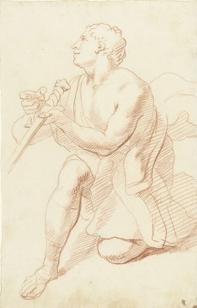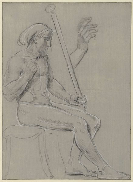 Józef Simmler made this nude male study in pencil as preparation for his painting ‘King David playing the harp’. The drawing gives us a glimpse into the artistic process of 19th-century academic painting. Produced in Poland, then partitioned between Russia, Prussia and Austria, Simmler's work reflects the cultural and political context of a nation seeking its identity. Historical and biblical scenes were often imbued with patriotic symbolism, offering a visual language for national aspirations under foreign rule. Simmler, who trained at the Dresden Academy, would have been influenced by its emphasis on technical skill and classical ideals, but also the need for artists to contribute to the moral and national life of the country. To understand Simmler's artistic choices, we might look into the exhibition culture of Warsaw at the time, or examine the role of the church as a patron of the arts. By situating this study within its historical moment, we can appreciate the complex interplay between artistic training, national identity, and political expression.