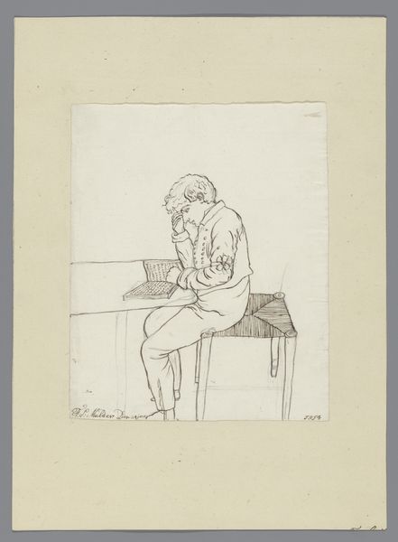 Rein Dool created this self-portrait with pen and brush in the Netherlands, at an unknown date. It shows the artist casually seated behind a table, his legs crossed, lost in thought. The artwork is a study in institutional critique. Dool challenges traditional notions of self-portraiture and the artist's role in society. The setting is stark and minimal, drawing attention to the artist's introspective gaze. Dool seems to ask himself what it means to be an artist in a rapidly changing world. The simple lines and bold contrasts create a sense of immediacy, inviting viewers to question their own perceptions of art and identity. To understand this work fully, we might look into the Dutch art scene of Dool's time, exploring the social and political issues that influenced his artistic vision. Through archival research and critical analysis, we can gain a deeper appreciation for the complexities of Dool's self-portrait and its contribution to the ongoing dialogue about art's role in shaping our understanding of ourselves and the world around us.