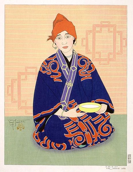 Paul Jacoulet produced this print, ‘La Danseuse Coreene’, in Seoul, Korea, at some point during his long stay in Asia between the 1930s and 1950s. Jacoulet was part of a longer trend of European artists who, from the late 19th century onwards, found inspiration in East Asia. He trained in traditional Japanese woodblock printing methods, and that is evident here. But, Jacoulet was clear that he was producing something new. Rather than copying Japanese styles, he wanted to bring a European sensibility to bear on what he saw around him. In this print, the theatrical pose of the dancer and the musician, along with the bright colors of their clothing, is eye-catching and a bit exotic. What did this image mean to Jacoulet, who was living as an expatriate, or to the Western buyers who purchased the image? These are questions we can ask as we investigate the social history of this work.