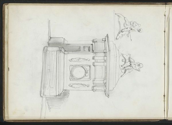 Editor: This drawing by John Flaxman in the Tate collection depicts what looks like a monument on wheels. I'm struck by how the delicate lines seem at odds with the monumentality it's trying to convey. What can you tell me about it? Curator: Consider the labor involved in producing this image. Flaxman, a celebrated sculptor, renders a proposed monument not in marble, but in humble pencil. This highlights the means of production – a shift from grand commission to portable, reproducible design. How does this democratize artistic vision? Editor: So, it's less about the finished object and more about the process of designing it? Curator: Precisely. It encourages us to question the traditional hierarchy of art forms and the very definition of "monument." We see the artistic vision at its source. Editor: I never thought about it that way. The sketch becomes a monument to the idea itself, rather than the physical manifestation. Curator: Exactly. And that shift challenges us to re-evaluate the role of art within the wider context of society and consumption.