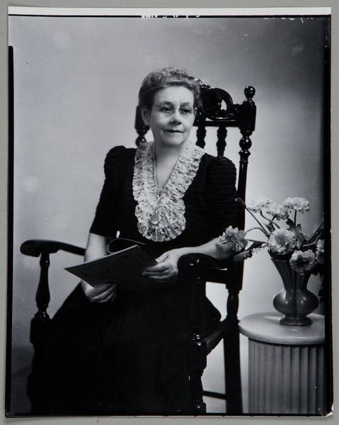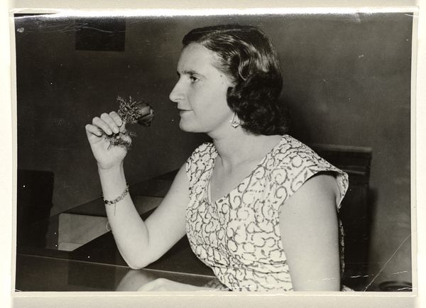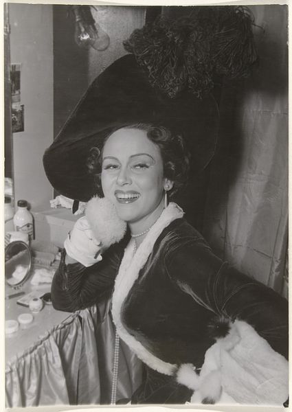 This photograph, "Fanny kijkt lachend in een spiegel naar het eindresultaat van de schoonheidsbehandeling," captures a moment frozen in time, its grayscale palette a study in light and shadow. It’s the kind of image where the process is almost palpable; you can feel the photographer, unseen, arranging the shot. Look at the way the light catches Fanny's smile, mirroring the hopeful gaze of the portraits behind her. The texture is everywhere, from the soft curls of her hair to the intricate details of the bow on her jacket. The dark and light interplay is really what holds my attention. It reminds me of some of Lee Friedlander's black and white portraits, where the mundane becomes extraordinary through careful framing and composition. This image doesn't shout; it whispers. It invites you into a space of quiet reflection, where beauty is found not in perfection, but in the simple act of looking. It's a testament to the enduring power of photography as a medium, and its capacity to capture the human spirit.