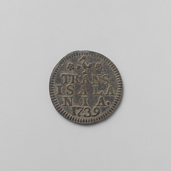 Editor: This is a Utrechtse dubbele stuiver, a coin, from 1788. It looks to be made of metal. It's interesting how much history can be embedded in such a small object. What stories does it hold? Curator: Indeed! This isn't just a coin; it's a loaded signifier from a specific historical and social context. Consider 1788. The Dutch Republic was on the verge of collapse, economic hardship was widespread, and Enlightenment ideals were clashing with the old order. Does this context change your understanding of it? Editor: It does. The lettering is so rigid and the coin itself appears worn, making me think about economic disparities and who had access to this form of currency at that time. Curator: Exactly! This dubbele stuiver represents more than just monetary value. It’s about power structures, class divisions, and the control over resources. Who benefitted, and who was marginalized, by this system of exchange? What do you think that imagery says about their society? Editor: Perhaps that the control and distribution of money was tightly regulated? I also wonder how a single coin can signify larger societal issues? Curator: Coins often carry the weight of a nation’s identity, its economic stability, and its political ideologies. So, in reflecting on this stuiver, how can it inform contemporary discussions about economic justice or perhaps even issues of accessibility of art? Editor: I see how even mundane objects can offer surprisingly profound insights. Thanks, this was eye-opening. Curator: Absolutely! Remember, art and history are interconnected.