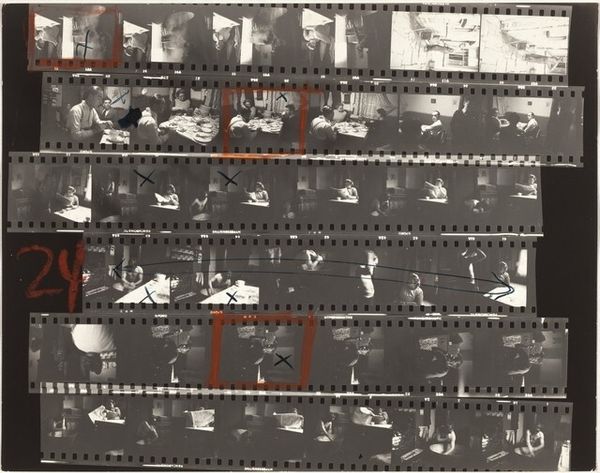 Robert Frank created "Wales 55," a gelatin silver print, capturing a sequence of images on film. Frank, a Swiss-American photographer, is renowned for his raw, documentary style, which often explored themes of social alienation and cultural displacement. Here, we see his perspective on Wales, likely taken during his travels. The series of frames offer a fragmented narrative, hinting at the lives and landscapes he encountered. There are images of authority figures, crowds, and desolate winter scenes. Frank’s work often reflects a sense of unease and detachment, challenging the idealized images prevalent in mainstream media of the time. Frank once said that his goal was always to capture "what it feels like to be alive now." Through his lens, we confront the complexities of identity, belonging, and the human condition. The emotional weight of this work lies in its candid portrayal of ordinary life, inviting us to reflect on our own experiences of place and identity.