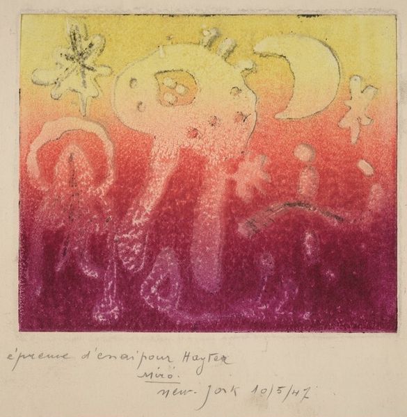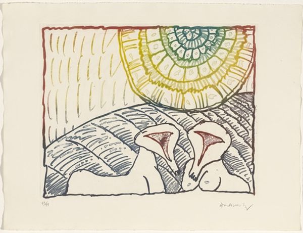 Pierre Alechinsky made 'Stars and Disasters', or 'Astres et Désastres' in his native French, using etching. The circular form is fascinating here because it's got these vertical forms in it which look a bit like blurry figures. There’s something so juicy about the way the colors are layered in this print. The artist creates this beautiful, saturated effect, and it feels like he's really pushing the boundaries of the medium. It's almost like he's saying, ‘How much can I get away with here?’ And I love that because it's so much about the process of making art. Look at the top right corner. The way the yellows have been laid over the reds – these bold, sweeping gestures – creates this incredible sense of depth and movement. It's as though the artist is inviting us to witness the act of creation itself. You could compare this to Joan Miro, as it evokes the subconscious and irrational. I love that art can embrace ambiguity. It's not about having all the answers. It's about creating a space for dialogue and exchange.