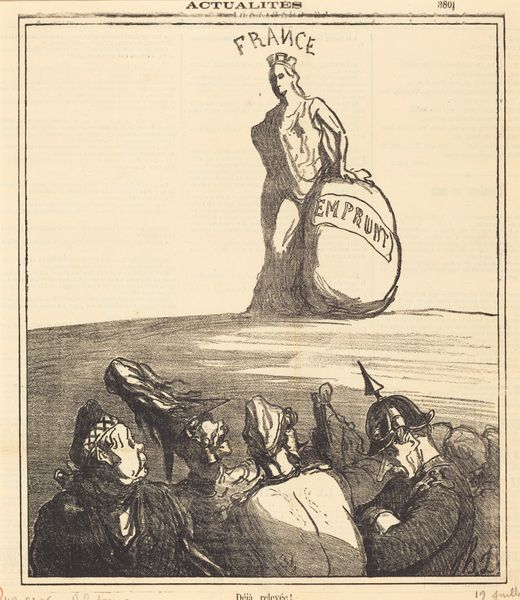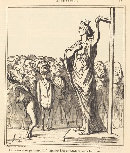 Honoré Daumier made this lithograph called "La rentrée" or "The Re-entry" that provides a fascinating insight into 19th-century French society. Daumier uses caricature to address the social and political climate of his time. On the right, we see a grand figure, perhaps representing Europe, adorned with what looks like a pot on her head, labeled "Pensionnat International Europe," hinting at a boarding school. To the left, a group of figures scurry towards her, with expressions that seem both comical and desperate. Daumier was known for his satirical commentary on the bourgeoisie and political figures, often challenging the status quo through his art. His work was published in newspapers, making it accessible to a wide audience and sparking public discourse. To truly understand Daumier’s commentary here, we need to delve into the historical context, examining the educational institutions of the time, the social classes they served, and the political events that shaped public opinion. We can research primary sources like newspapers and political pamphlets, to better understand the social, cultural and institutional contexts of Daumier’s time.