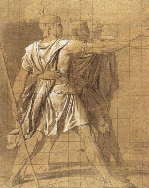 Curator: This drawing, made with charcoal, depicts the prophets Hosea and Jonah, and it comes to us from the hand of Raphael, dating back to around 1510 during the Italian Renaissance. Editor: Whoa, my first impression is serious biblical drama! It feels intensely theatrical even just in charcoal—the light, those brooding figures… like backstage at some divine play. Curator: Exactly. Raphael created this as a preparatory study. Commissioned by Pope Julius II, this artwork served as inspiration for the frescoes Raphael painted in the Vatican’s Stanza della Segnatura. We see the prophets, each holding tablets, perhaps inscribed with their prophecies, embodiments of divine knowledge and foresight. Editor: You know, seeing the angel hovering behind Jonah, pointing skyward, is what really strikes me. There’s a restless energy, even though it’s a preparatory sketch. You can feel the artist wrestling with the composition, almost a spiritual exploration happening right there on the page. Curator: The positioning of these prophets, combined with the architectural framework, certainly alludes to their role in bridging the divine and earthly realms, and this relates to a growing public interest in humanist ideals. The Renaissance emphasized direct engagement with classical texts and promoted rational thought and individual agency, influencing even sacred art like this. Editor: It’s wild how he makes charcoal feel so luminous. Look at the drapery—the folds have this real weight and flow. It is fascinating seeing art, made for the elite and powerful, gradually democratizing itself as we approach the Renaissance period, as well as a growing population moving into urban life. It reflects how, socially and culturally, things were gradually starting to open up. Curator: I agree. Studying Raphael’s work reveals a society in transition, navigating ancient wisdom with new perspectives. The prophets embodied both spiritual authority and human intellect. It's interesting to see how Renaissance art encouraged a re-examination of established social norms through its engagement with classicism and developing humanism. Editor: Yeah, these guys are definitely pondering more than just fire and brimstone. Well, after really absorbing it, this charcoal piece, although historical and tied to its time, truly does remain deeply evocative! Curator: Indeed! Raphael has definitely left us much to consider when we analyze the context of his works.
