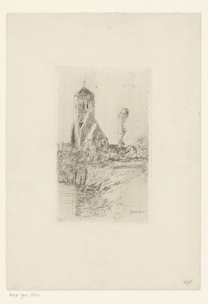 Editor: So, this etching, "Le Palatin Rome" by Etienne Bosch, dates from before 1933. It’s a small print, but it feels massive, you know? Like looking at a monument through a keyhole. What strikes you about this piece? Curator: Ah, the keyhole. I love that. It’s almost as if we’re peering into history itself. For me, it’s the layering of time that sings. The ancient Roman ruins, of course, etched with such delicate realism, yet hinting at centuries of stories buried within those stones. I imagine Bosch standing there, sketchbook in hand, trying to capture not just the scene, but the echo of empires. Does it make you think about how we memorialize history? Editor: Definitely. It's interesting how much detail he gets into such a small space. Do you think he was trying to romanticize the ruins or show their real, decaying state? Curator: I think it's both, isn't it? He is holding decay in time by recording that single instance as the paper interacts with acid and ink; a freeze-frame of time. We feel the weight of history but also its impermanence, the slow march toward… what? Dust? New beginnings? Look closely. The details are rendered lovingly. Isn't there almost a sense of peace within the ruins? Editor: I see what you mean. Initially I focused on the decay, but now I notice the figures amongst the stonework...it gives life to what could just be a sad image. Thanks, I now find it strangely hopeful. Curator: It's like discovering a secret garden within the ruins, a quiet dialogue between past and present. Funny how a little bit of art can rearrange our perspectives, isn't it? Editor: Absolutely! I hadn't considered it that way at all. Definitely see the piece in a new light now.