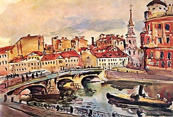 Editor: We're looking at "Leningrad. The embankment of the Neva," a watercolor painting by Pyotr Konchalovsky from 1931. It’s quite striking—the colors are muted, almost dreamlike, which creates this somber feeling, even with the presence of the water and buildings. What catches your eye most about this work? Curator: Well, this painting really speaks to the tension between artistic expression and socio-political realities in early Soviet Russia. Konchalovsky, though trained in pre-revolutionary styles, was working in a time when art was increasingly expected to serve the state. Look at the cityscape – it's recognizable as Leningrad, but it's devoid of overt revolutionary imagery. Editor: So you're saying the choice of subject itself—a landscape—is significant? Curator: Absolutely. Landscape, while seemingly neutral, becomes a stage. It raises questions. Is it an endorsement of the city, or a quiet observation? The lack of glorification might be a subtle act of resistance, a way to avoid producing purely propagandistic art. How does this interpretation affect your reading of the "somber feeling" you sensed? Editor: That's fascinating! I initially saw it as just a melancholic depiction of a city. But knowing the political climate adds a whole new layer of complexity. It makes me wonder about Konchalovsky’s intentions and how viewers at the time might have interpreted it. Curator: Precisely. And consider the role of institutions. Works like this were acquired and displayed by Soviet museums, fitting into a curated narrative of Russian art. The presentation shaped its reception. Does thinking about the socio-political landscape affect your perception of artistic "freedom?" Editor: It definitely does. It shows how even seemingly simple landscape paintings can hold deeper meanings. I’ll definitely approach artworks with a more critical and historical lens moving forward. Curator: Wonderful. And I appreciate your initial, emotional response; it's a reminder that art always speaks to us on multiple levels.