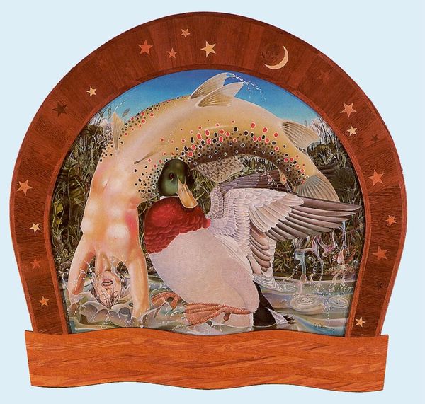 Kit Williams made "Salamander" with paint, and it's like stepping into a dream where anything can happen. The colours are warm and inviting, like a memory of a perfect summer day. Look closely at the fire down below, the way the paint dances with such detail and precision. You can almost feel the heat. Then, see how the figures above are much more loosely painted. It's as if Williams is telling us a story about what's real and what's imagined, and how the two blend together. The whole scene reminds me of early surrealism, like a painting by Max Ernst. It's a reminder that art is always talking to other art, remixing and reimagining what came before. It's not about finding one right answer, but about enjoying the mystery.
